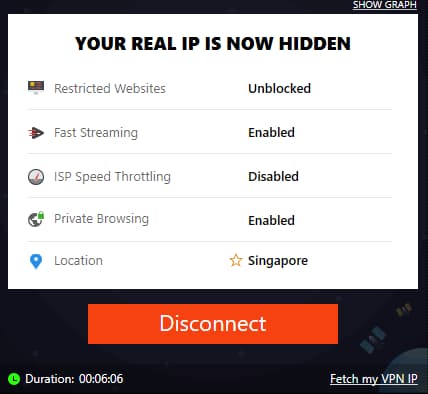 我们重新更换了一个节点,这次我们选择的是新加坡的节点,连接后如下:
