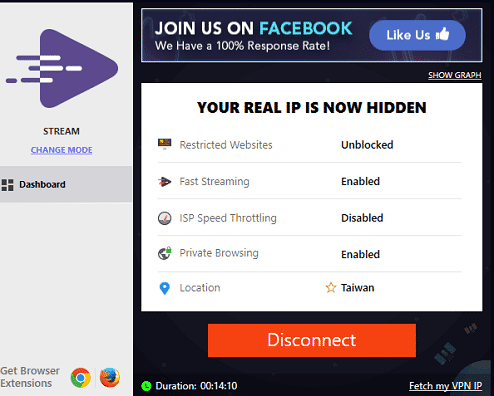 注意:如果你有在浏览器翻墙的习惯,那么非常推荐你使用 purevpn 浏览器插件。目前,purevpn 浏览器插件支持 Chrome 和 Firefox,在浏览器上使用插件翻墙的好处是:1.实现局部翻墙,只在浏览器上打开的页面翻墙,其它客户端走本地网络;2.浏览器插件目前使用的人比较少,翻墙速度比客户端上的翻墙速度快很多。