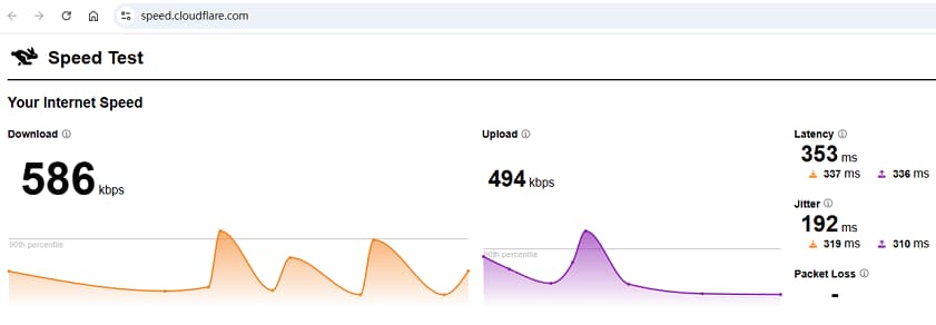 Download :586 kbps;Upload:494 kbps 。