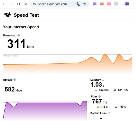 Download :311 kbps;Upload:582 kbps 。