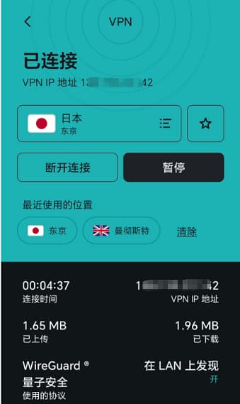 综上:根据以往的测试情况,中国电信4G的连接情况好于中国联通、中国联通好于中国移动,不过不同地区差异较大。目前首选 WireGuard 协议,WireGuard 协议下部分节点已经逐渐恢复,但是可用节点较少。在晚高峰的时候,有时候会出现所有节点都无法连接的情况,这个时候需要重启客户端,然后再重新尝试连接一般会恢复。