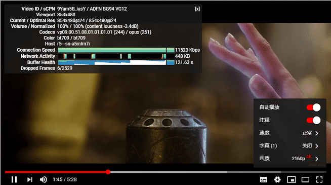 即使通過它來觀看視頻,也能獲得非常不錯的體驗效果,比如在油管觀看 4 K視頻,基本能跑滿帶寬: