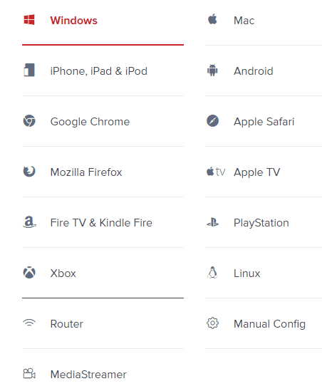 除了支持包括 Windows、Android、Mac、iPhone&iPad&iPod、Linux、Apple Tv、Fire Tv等主流客戶端,還支持xbox、路由器、谷歌火狐瀏覽器插件。基本你能想到的客戶端它都支持。